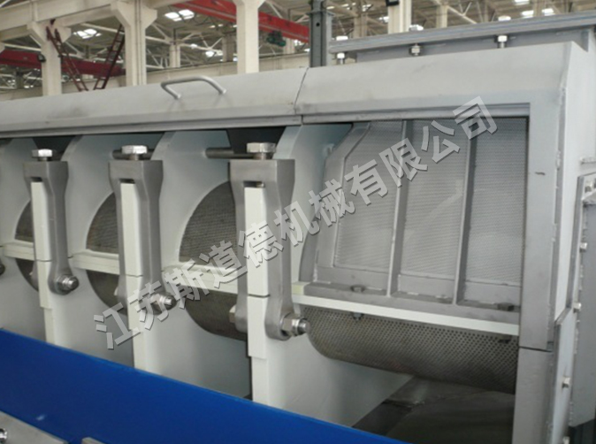 3、固液分离系统由筛架、筛板、筛网、螺旋轴组成,并由螺栓固定于机座上,以支撑挤压过程中物料的过滤脱水,筛板孔径直径为0.1-5mm,防止大颗粒物料流失。